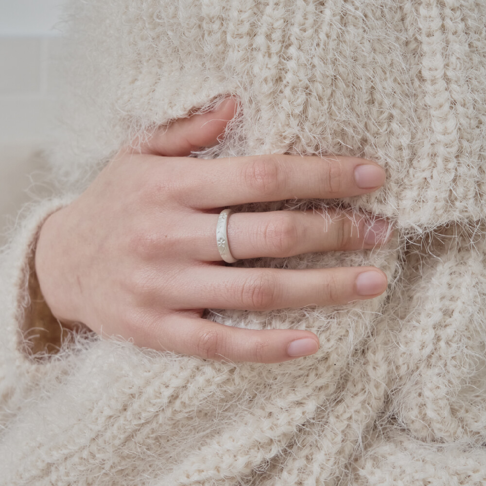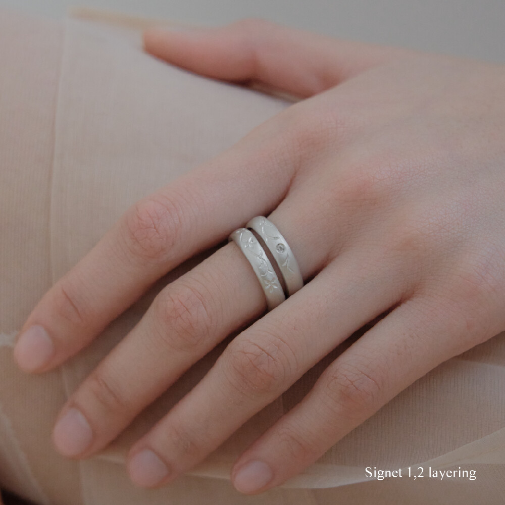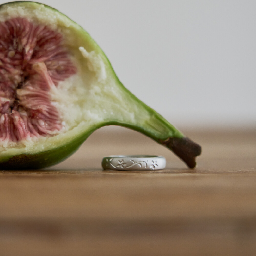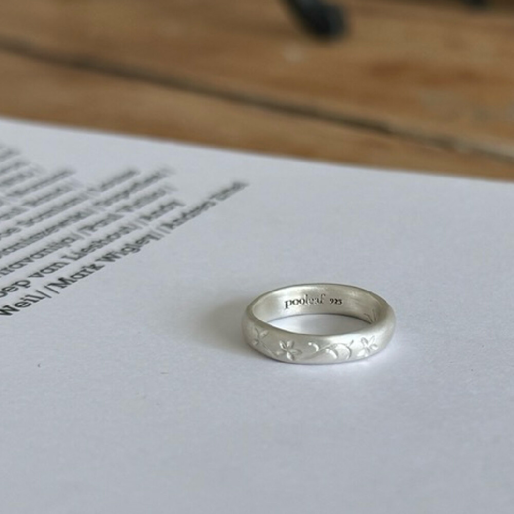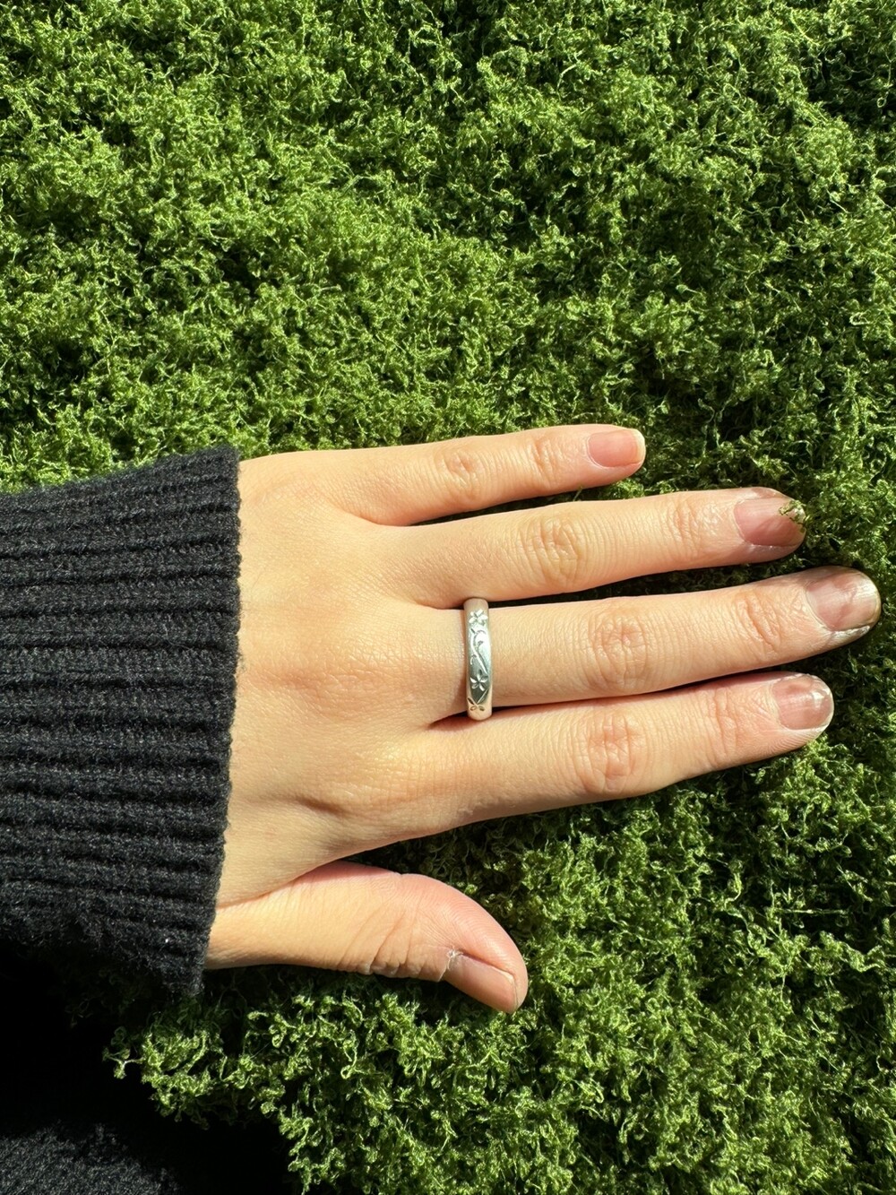꽃과 풀잎들을 조각으로 새겨낸 풀잎 시그넷 링입니다. 얇은 두께감으로 하나만 착용하기에도 좋고, 시그넷링2와 함께 레이어드, 혹은 커플링으로 착용하시기에도 좋습니다.